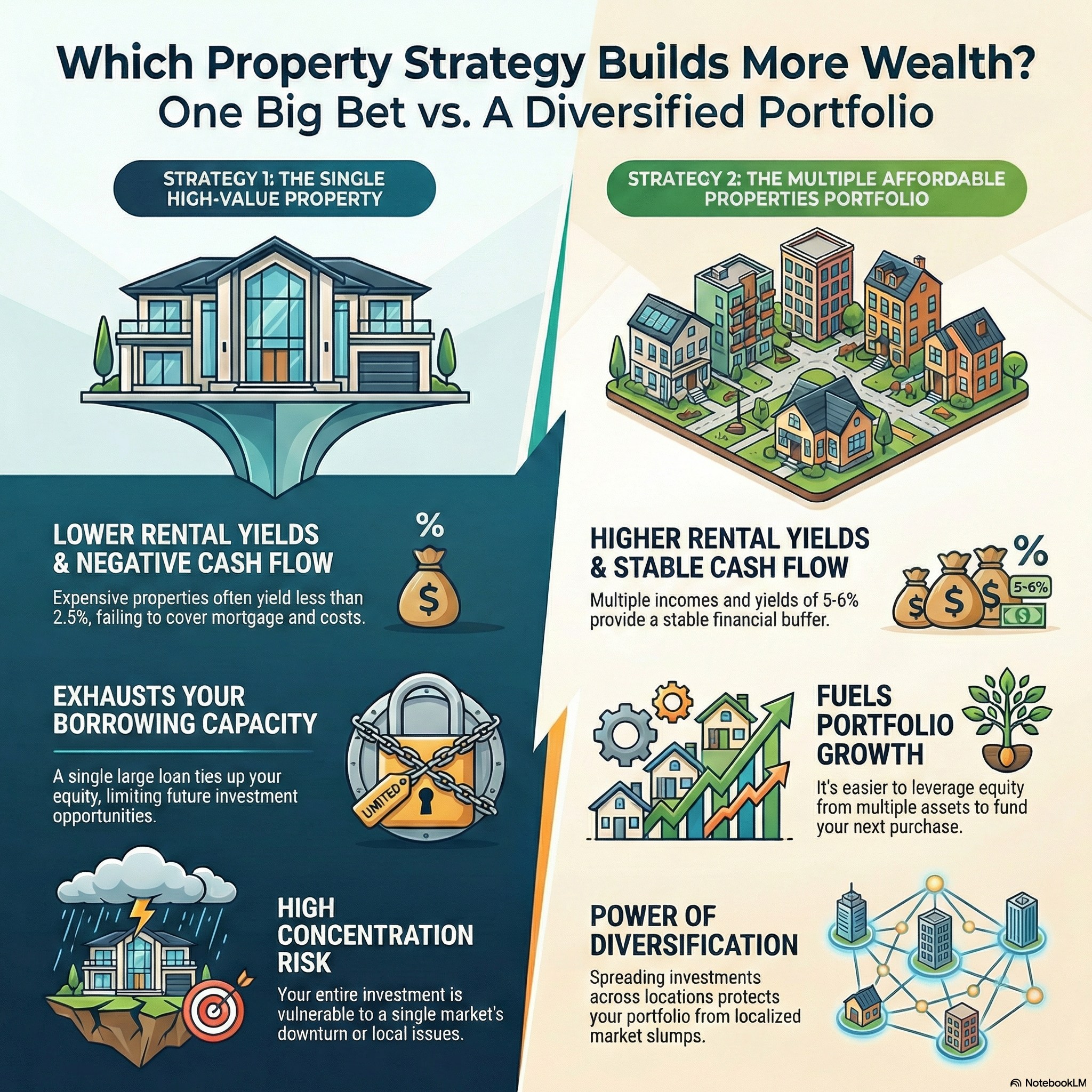 Key Takeaways Multiple affordable properties provide greater diversification and higher rental yields than investing in one expensive...