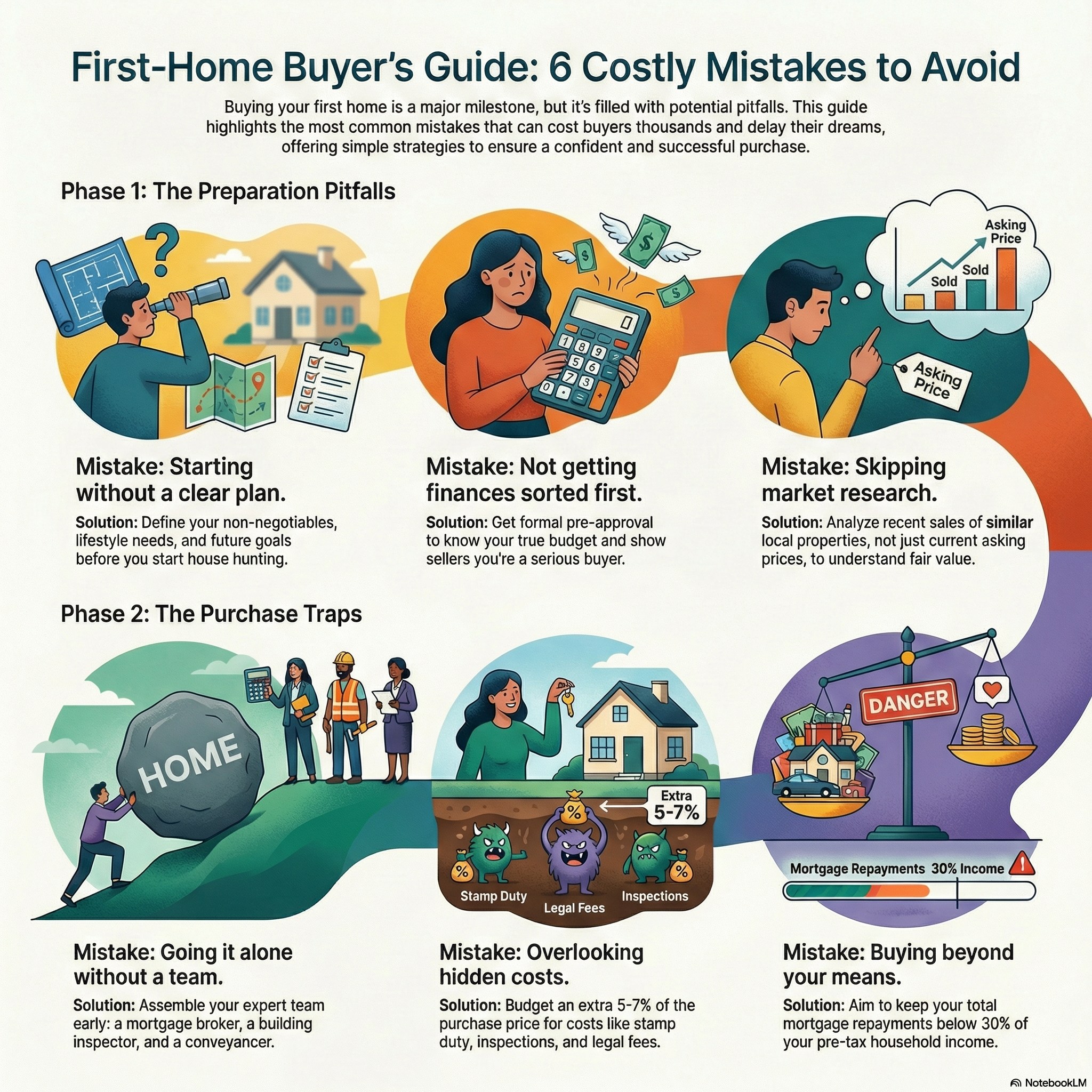 The journey to homeownership can feel overwhelming, especially when you’re stepping into the property market for the first time. Every year, thousands of first home buyers across Australia make costly mistakes that could have been easily avoided with the right guidance and preparation.