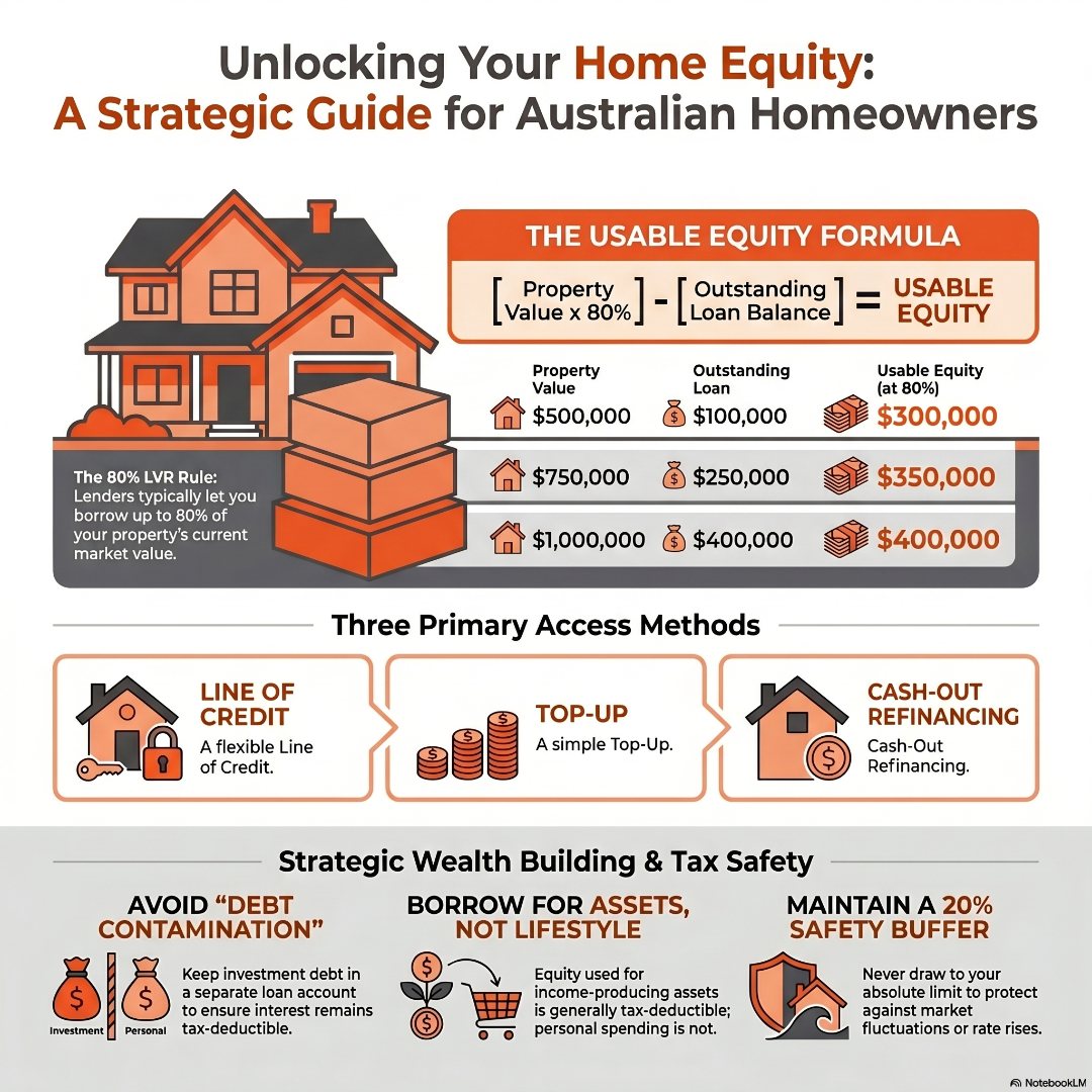 That $330,000 can become a deposit on an investment property, funds to renovate and increase your home’s value, or a strategic financial reserve – without selling a single brick. This is how many Australians who have built serious property portfolios actually got started. They did not save more. They leveraged what they already had.